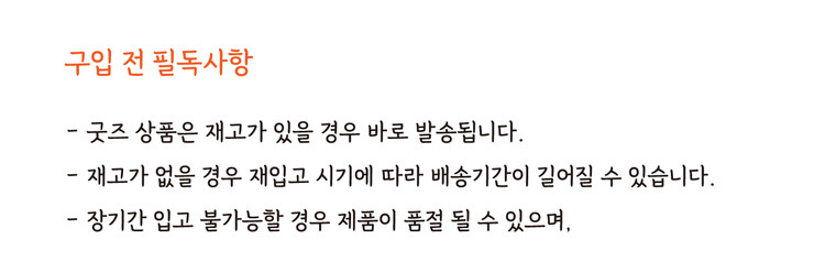 - 기본 배송 기간 이상 소요되거나, 품절의 경우 개별로 연락드립니다.